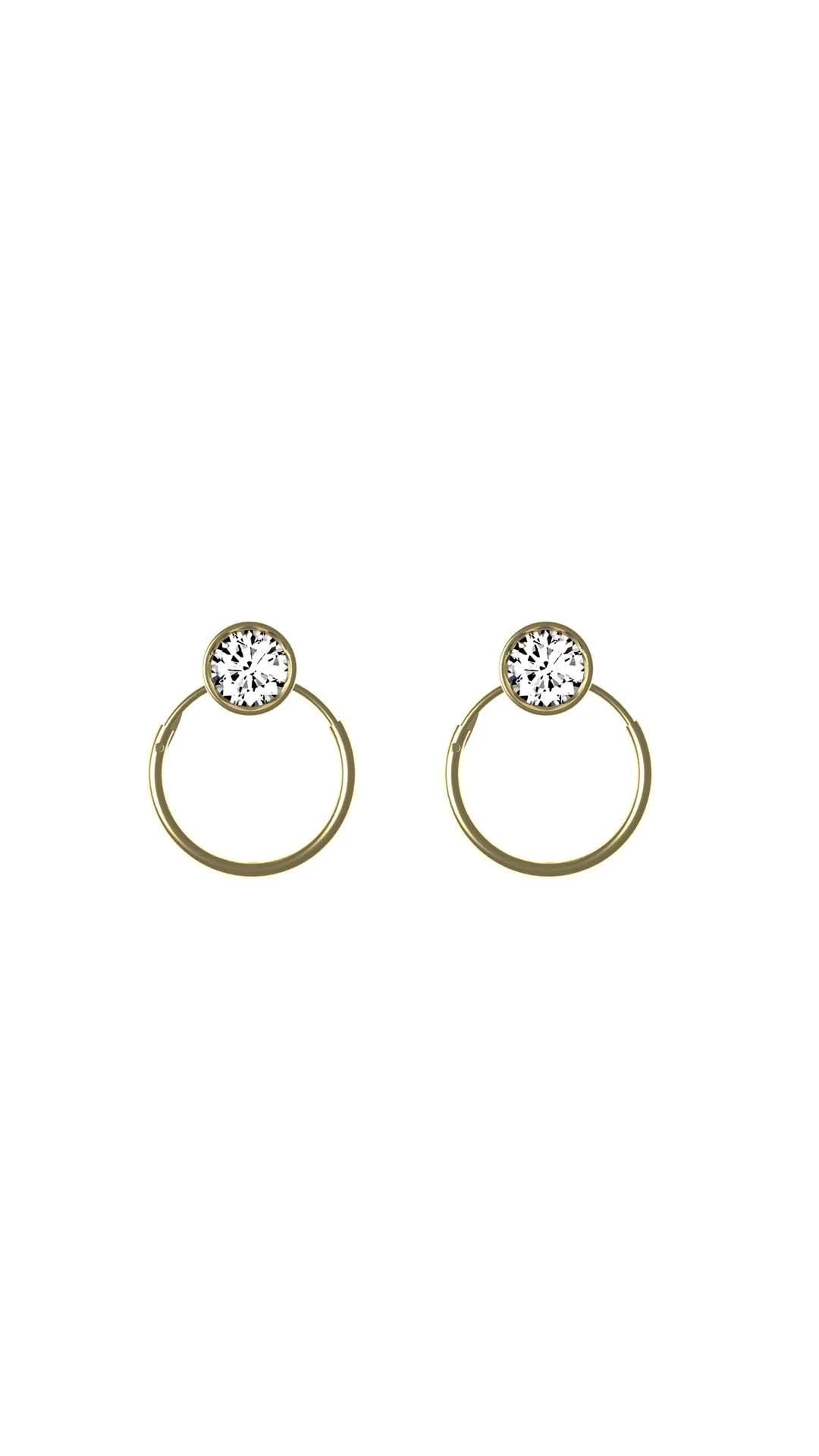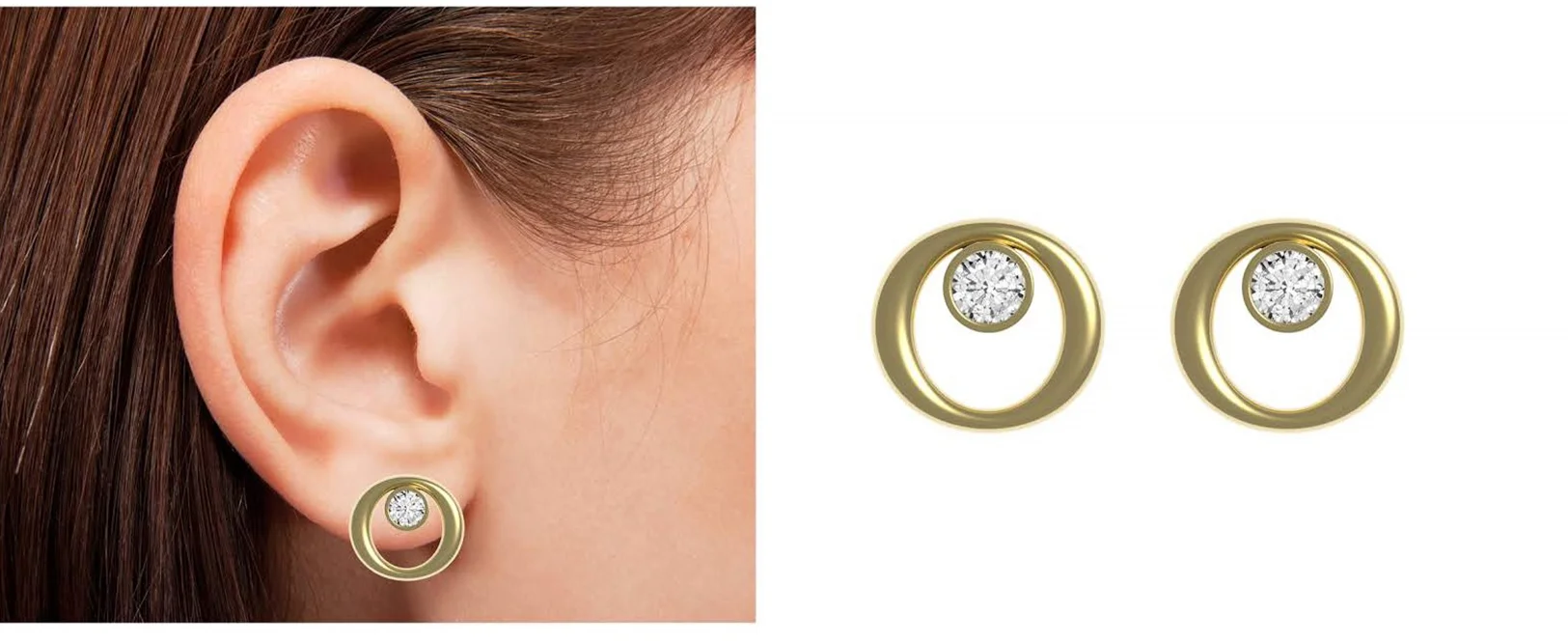 The second design showcased round diamond studs inside an 18ct yellow gold circle. Similarly, to the first design these earrings could be worn alone or else with additions such as pearls or gold elements.